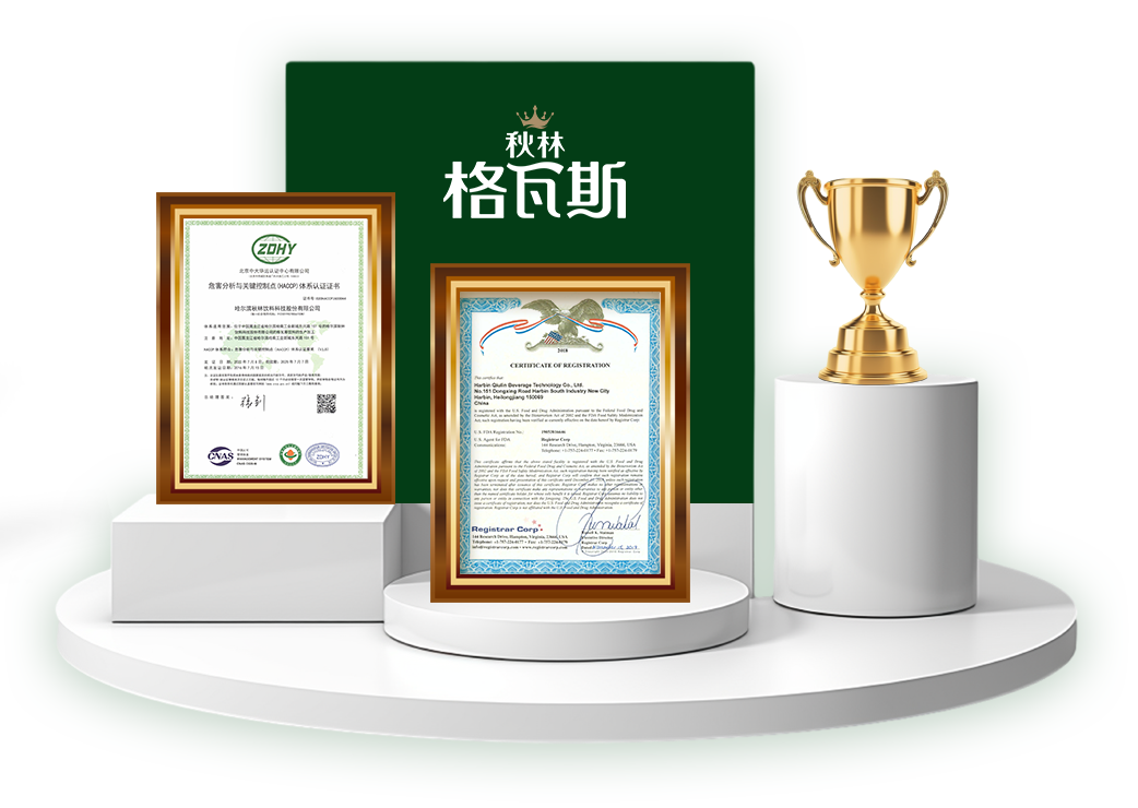 Harbin Qiulin Beverage Technology Co., Ltd. has obtained multiple international certification qualifications, including ISO9001, ISO22000, ISO14001, HACCP, FDA, ISO45001, etc.
